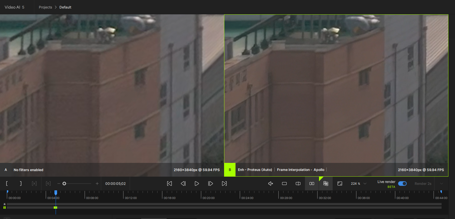 Topaz Video AI의 화면입니다.